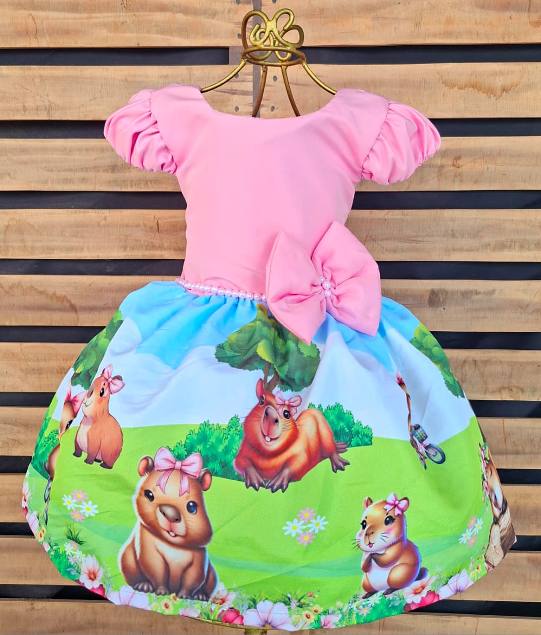 Vestido Capivara Pérolas Temático Infantil Festa